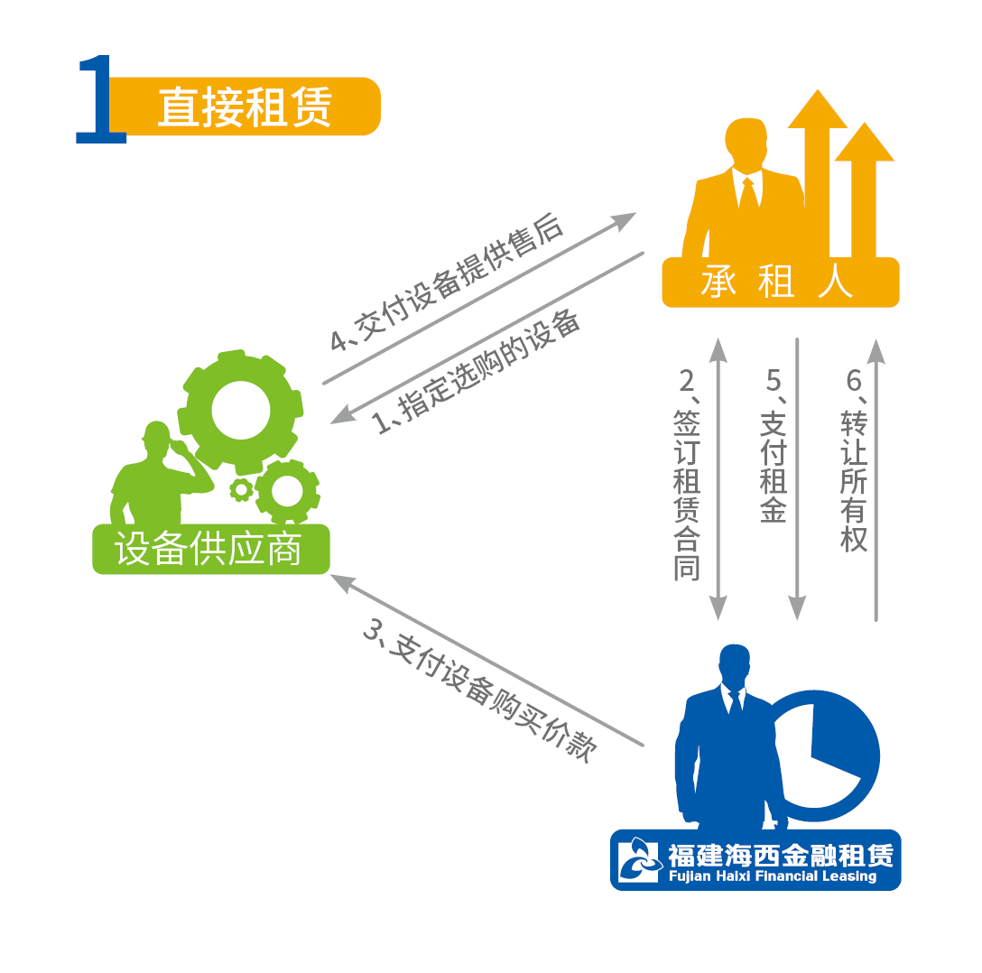 產(chǎn)品定義:海西金租根據(jù)承租人對租賃物和供應(yīng)商的選擇,向供應(yīng)商購買選定設(shè)備,提供給承租人使用 , 承租人按期支付租金的業(yè)務(wù)模式,租賃期滿后,設(shè)備歸承租人所有。